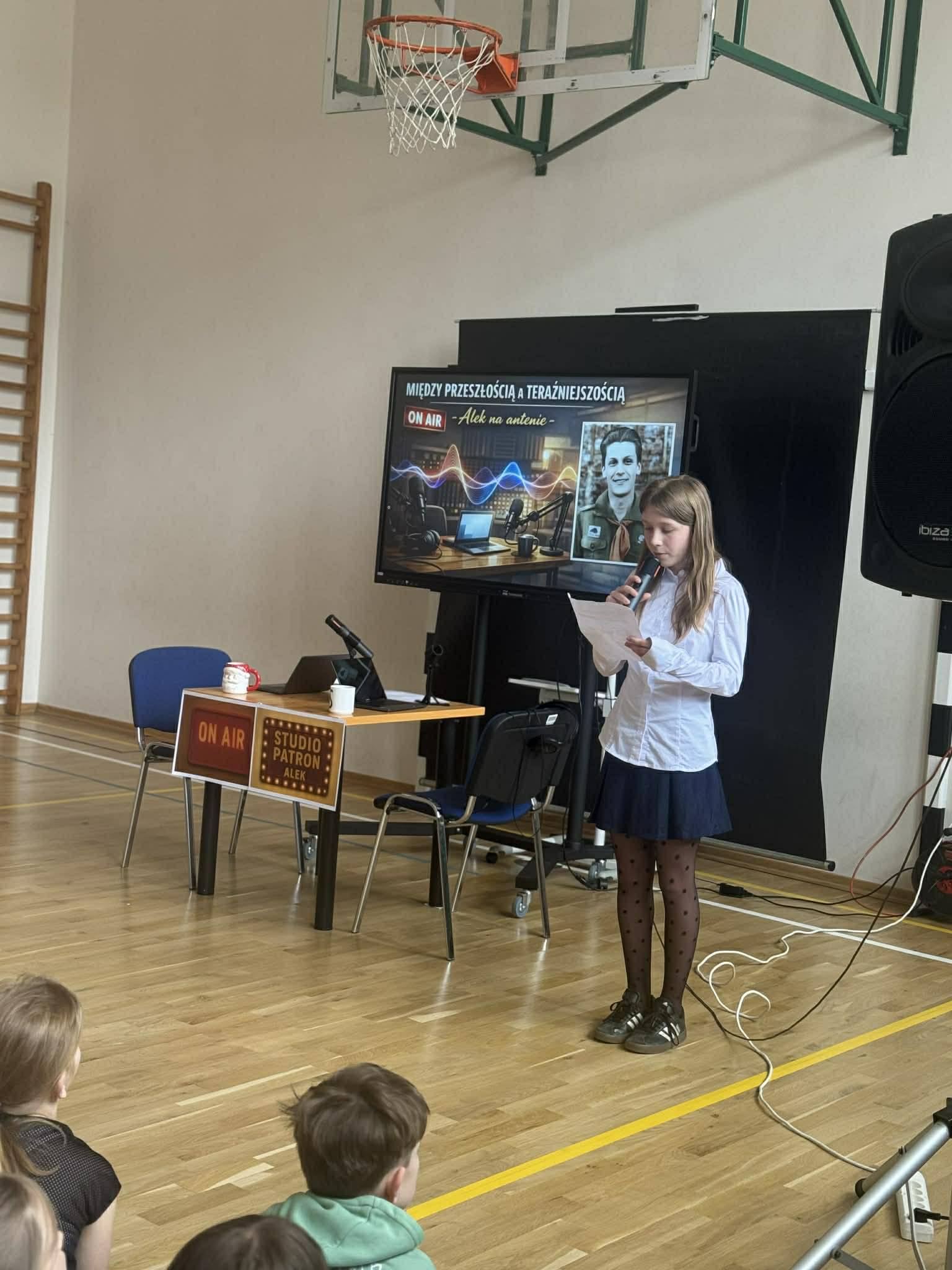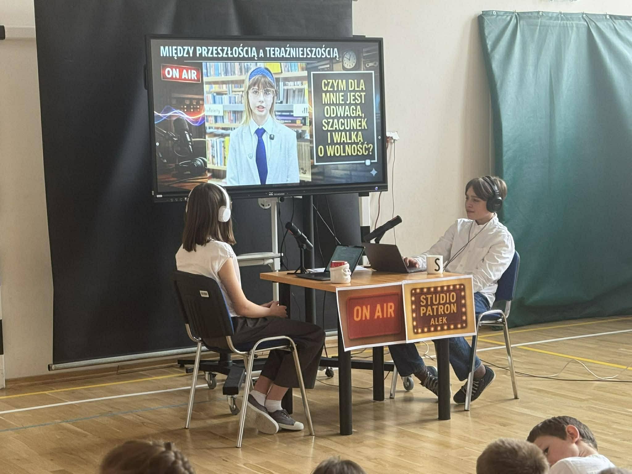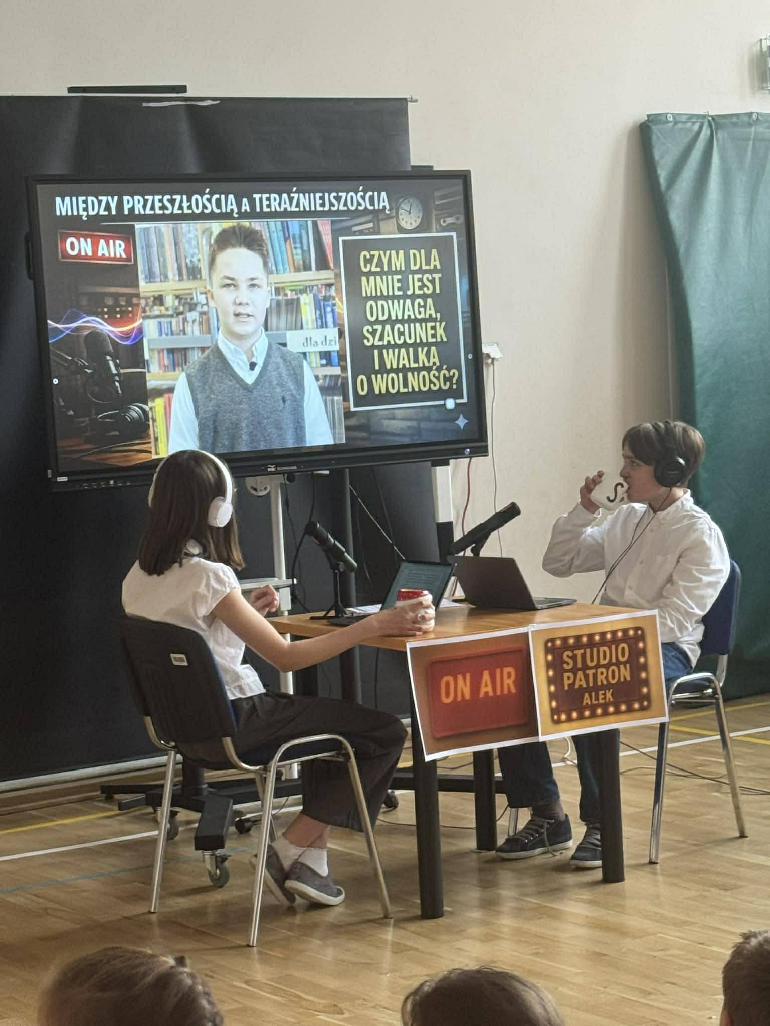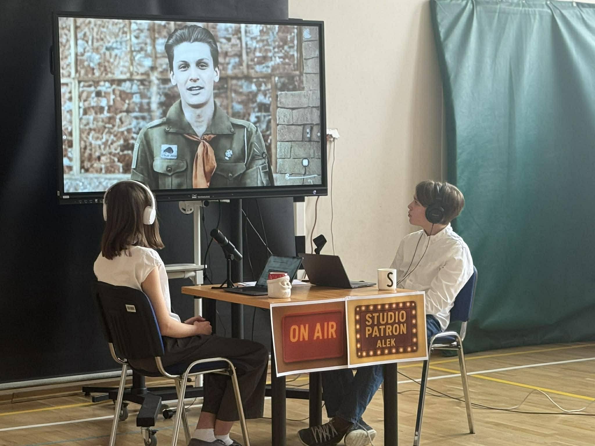 Po rozmowie z Alkiem głos zabrali uczniowie naszej szkoły, którzy w krótkich nagraniach odpowiadali na pytanie: Czym dla mnie jest odwaga, szacunek i walka o wolność? Ich refleksje pokazały, że wartości bliskie Patronowi są wciąż żywe.